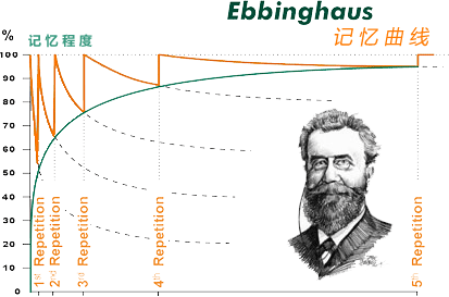 我们以德国心理学家赫尔曼·艾宾浩斯(Hermann Ebbinghaus)的遗忘曲线为理论基础,计算获取人类记忆的遗忘时间点, 通过在该时间点上的强化、重复记忆活动来防止遗忘的产生,从而达到提高记忆效果。